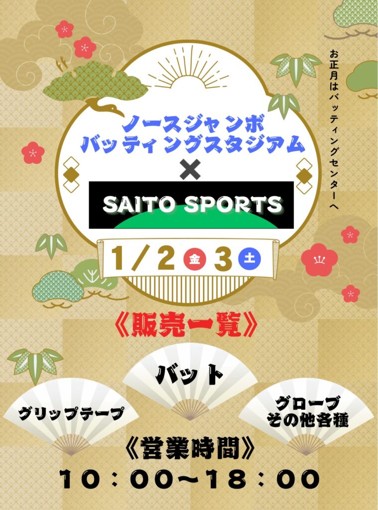 1月2,3日10:00~18:00の二日間に限り当店にてサイトウスポーツ様による初売りが開催されます!